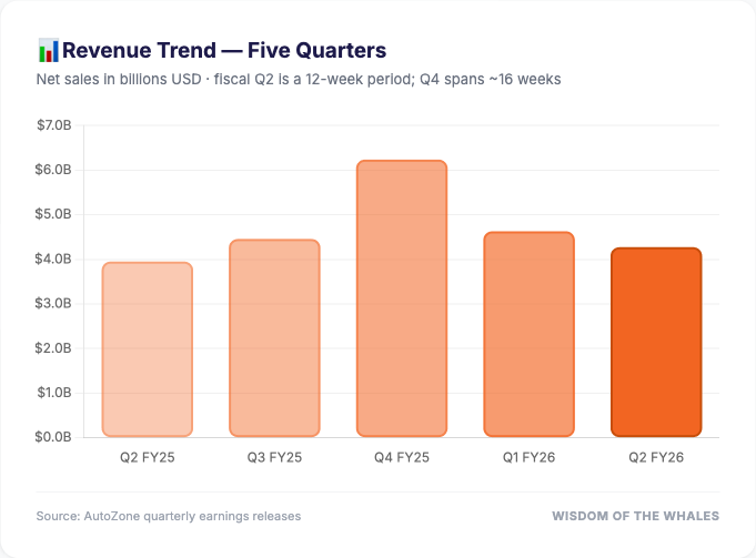Worth noting: Q4 FY2025's enormous $6.24B reflects AutoZone's longer 16-week fiscal fourth quarter — not a sudden surge in business.