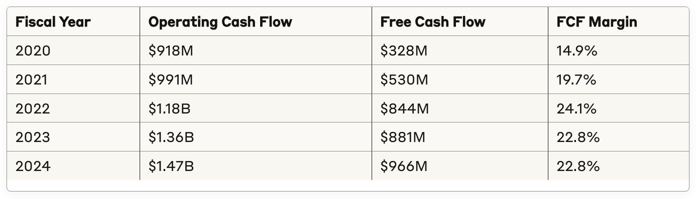 Robust free cash flow generation ($965M in fiscal 2024)