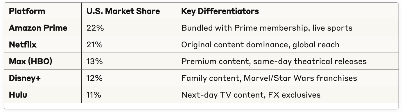 The streaming landscape has consolidated into a battle between Netflix and Amazon Prime Video for market leadership: