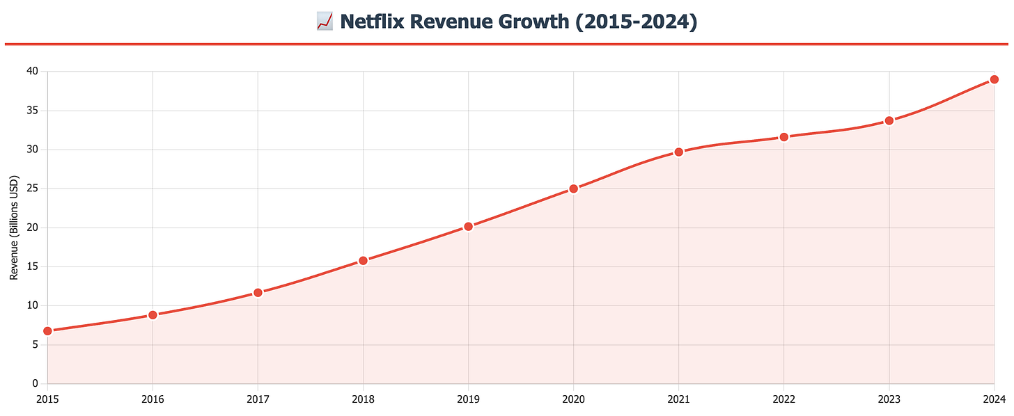 Netflix continues to dominate the streaming landscape, but its strategy has fundamentally evolved. No longer the pure growth story of the 2010s, Netflix has transformed into a mature, profit-generating machine with ambitious plans to double its $39 billion revenue by 2030 and reach a $1 trillion market capitalization.