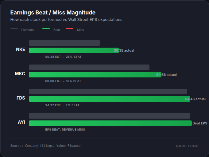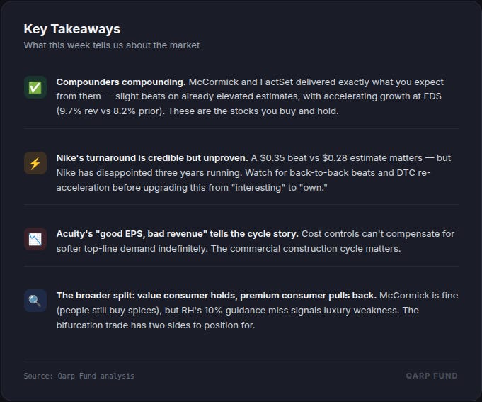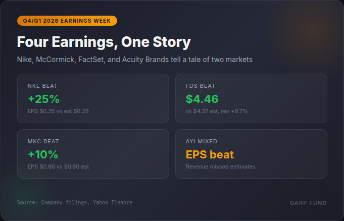Nike beats, McCormick holds, FactSet surges, and one quiet miss tells you exactly where to look next.